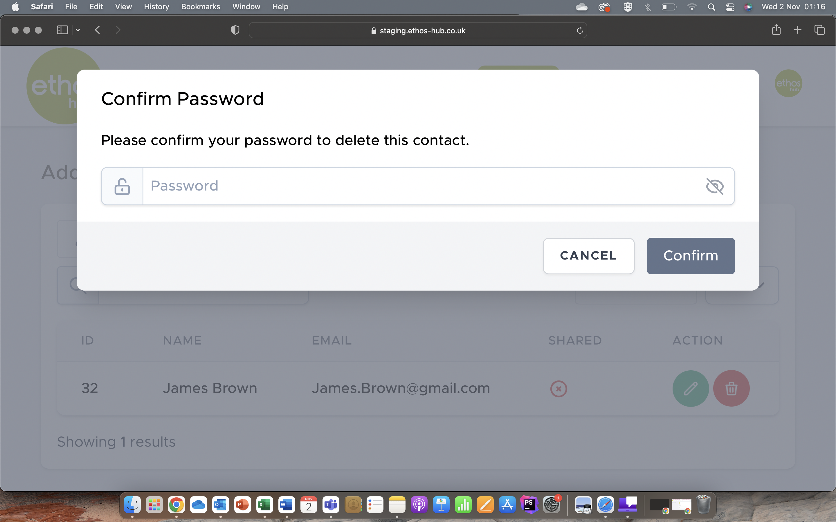 If you choose to delete a contact, you will be prompted with a window that requires you to confirm your password.
