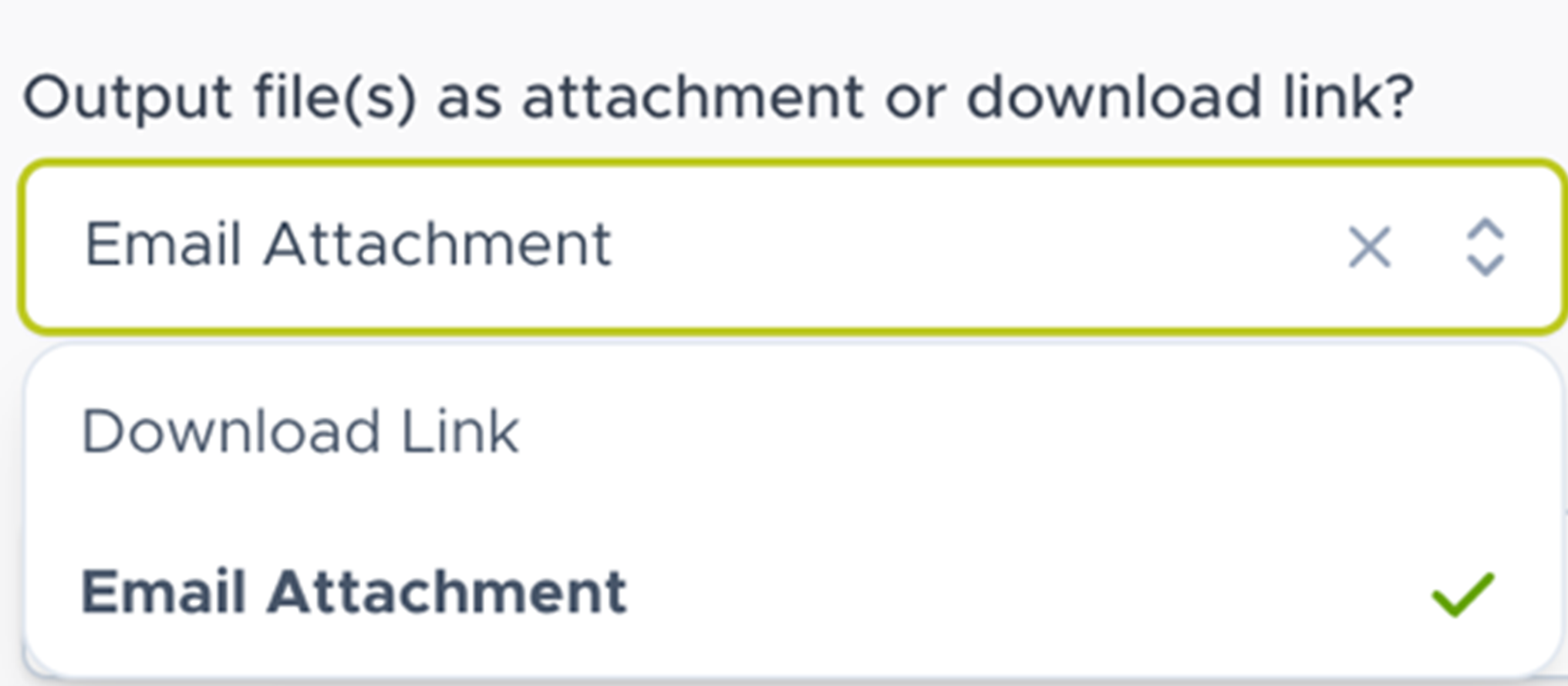 Choose how you would like your output file(s) as either an Email Attachment or Download Link.