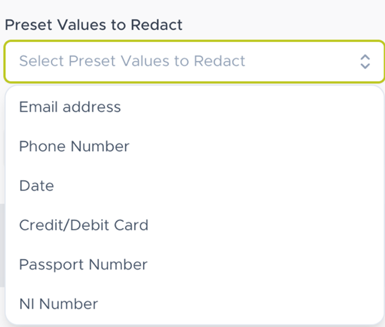 We have a variety of commonly used redactions ready for you to select from such as credit/debit card details, phone number and email addresses.