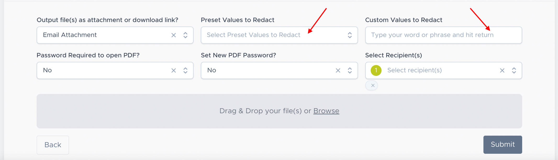Once you have completed your redaction choices you have the option to choose the recipient(s) you wish to send the documents to in the drop-down menu.