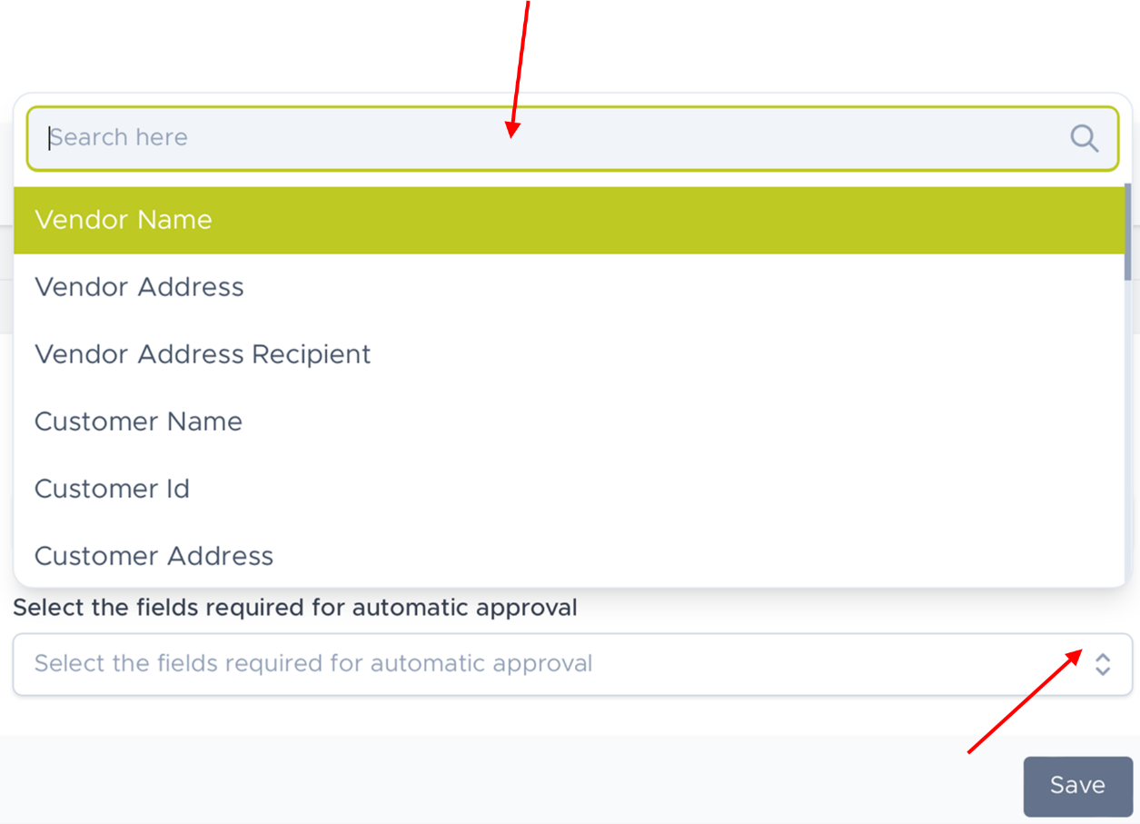 Click on the dropdown menu to select the fields that you require for automatic approval, you can also manually search for the fields.
